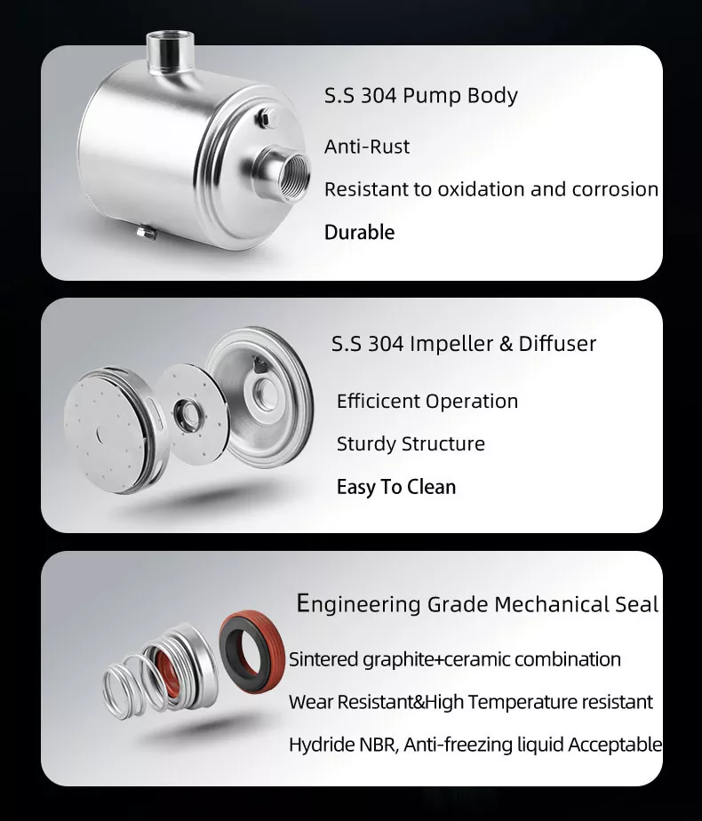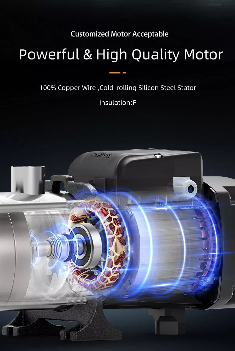 2. Многостъпалната центробежна помпа има същия калибър и е на същата хоризонтална централна линия. Не е необходимо да се променя структурата на тръбопровода. Може да се монтира директно във всяка част на тръбопровода, което е изключително удобно за монтаж.