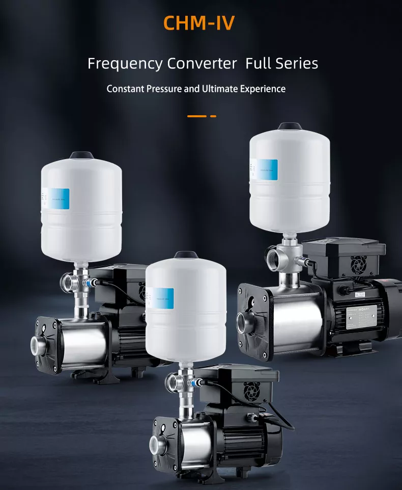 Серията CHM20/IV интелигентна инверторна серия хоризонтална многостъпална центробежна помпа от неръждаема стомана е сравнително зрял продукт на пазара в момента, който е с компактна структура и стабилна работа, нисък работен шум, ефективност до 44-70%. Всички водопроводни компоненти са изработени от неръждаема стомана AISI304. Той се използва широко в