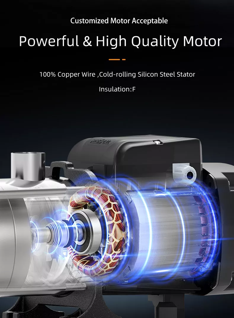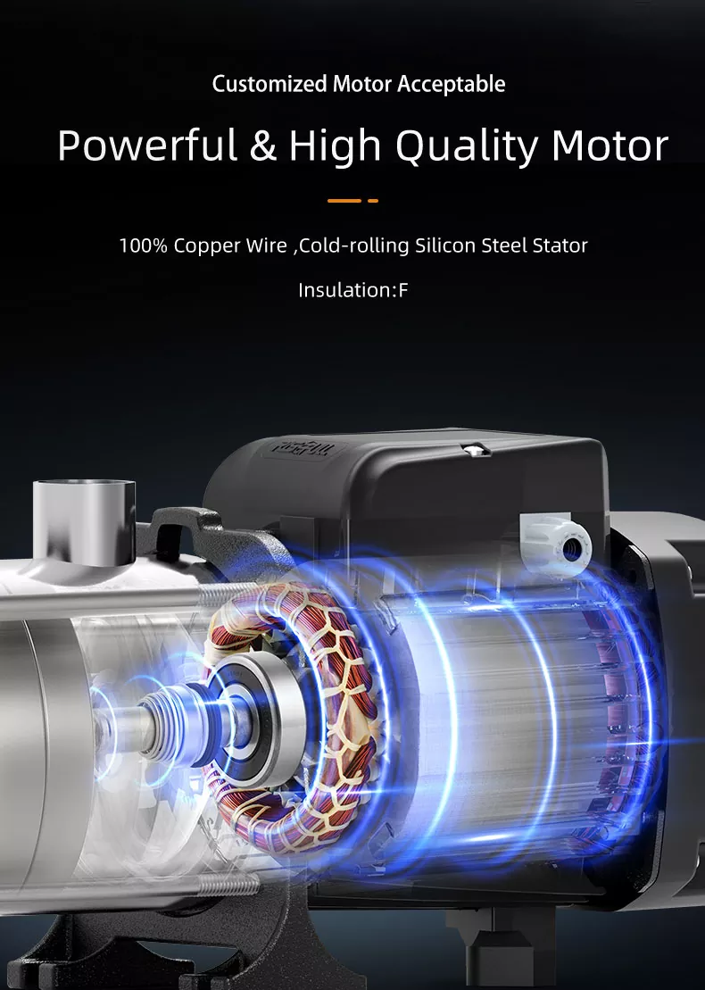 1. Многостепенна функционалност: Нашата помпа разполага с множество работни колела, които работят безпроблемно заедно, за да осигурят високо налягане и дебит, което я прави идеална за взискателни среди, където последователната производителност е от решаващо значение.