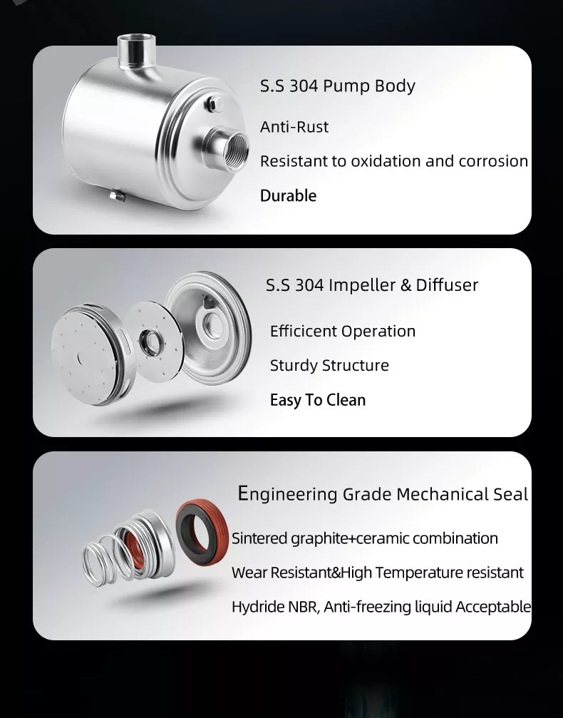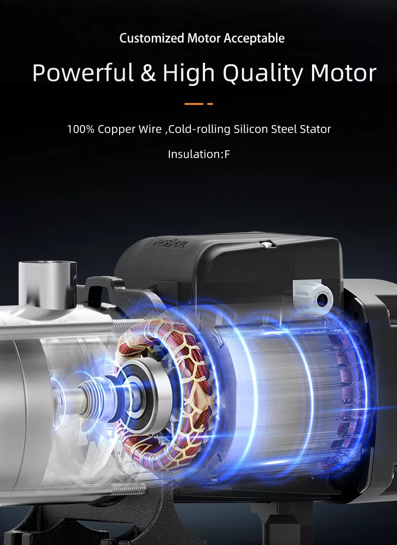 Издръжливостта е ключова, когато става дума за водни помпи, а нашата интелигентна помпа за многостъпална под налягане е изградена да продължи. Изградена от висококачествени материали и проектирана за дългосрочна надеждност, тази помпа е инвестиция, която ще ви служи добре за години напред. Независимо дали го използвате за жилищни или търговски приложения, можете да се доверите, че тази помпа ще издържи теста на времето.